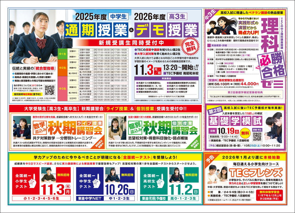 TEC予備校 2025年10月11日(土)徳島新聞(朝刊)